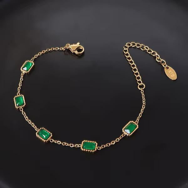 Enhance your jewelry collection with this exquisite set featuring a gold-plated stainless steel pendant necklace adorned with a sparkling cubic zirconia diamond and a matching bracelet showcasing vibrant green gemstones. Designed for durability and timeless elegance, this set is perfect for both everyday wear and special occasions.